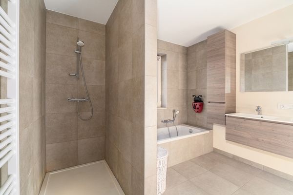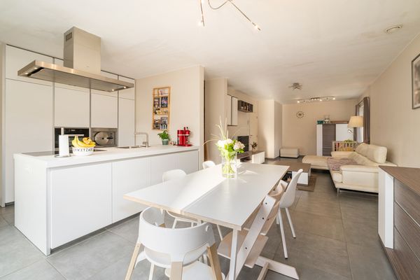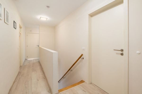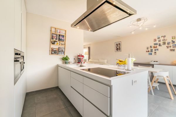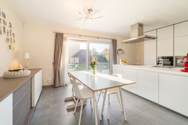 Indeling: Inkomhal met gastentoilet. Lichtrijke woonkamer met geïnstalleerde open ‘Bulthaup’ keuken. Praktische berging/wasplaats nabij de keuken. Garage voor één wagen. Op het verdiep: Nachthal met apart toilet. Masterbedroom met dressing. Tweede, derde en vierde slaapkamer. Ruime badkamer met inloopdouche, ligbad en dubbele lavabo. Berging. De tuin is zuidoost georiënteerd, omheind en voorzien van een terras. Autostaanplaats voor de garage en voldoende parking in de straat.