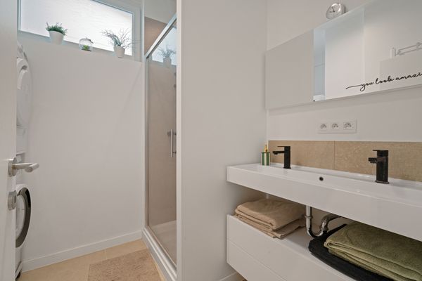Indeling: Lichtrijke woonkamer met parketvloer. Moderne keuken met toegang tot balkon. Masterbedroom en een tweede kleine slaapkamer (dubbel bed en bureau mogelijk of dubbel bed en kast). Apart toilet. Badkamer met douche, dubbele lavabo en plaats voor wasmachine en droogkast.