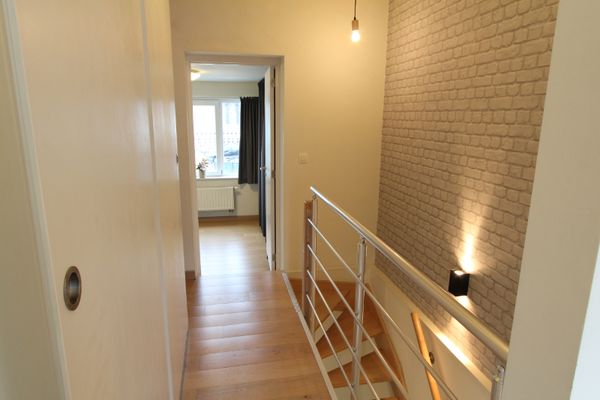 Achteraan de recent vernieuwde straat bevindt zich een buurtmoestuin, voetbalveld en speeltuin. Deze woning is gelegen te Gent, op 10 min. fietsen van het winkelcentrum Dok-Noord, het centrum en via een verlichte fietsroute naar het natuurreservaat Bourgoyen. Vlotte verbinding met E17, R4 en E40. Indeling: Inkomhal. Woonkamer met volledig geïnstalleerde open keuken. Op de eerste verdieping: Nachthal met berging en apart toilet. Lichtrijke slaapkamer. Ruime badkamer met inloopdouche en lavabo. Op de tweede verdieping: Tweede ruime slaapkamer. Stadstuin met overdekt terras en praktische opbergruimte. Toegang via poortje achterzijde van de tuin. Ruime parking en fietsenstalling voorzien achterliggend de woning. Totale renovatie, inclusief de leidingen. De woning is uitgerust met airconditioning en zonnepanelen. VRIJ BIJ AKTE!