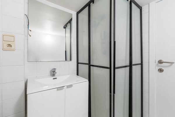 Indeling: Ruime inkomhal met opbergruimte. Lichtrijke woonkamer met een open uitgeruste keuken. Slaapkamer met aanpalend de badkamer met lavabo, toilet en douche. Het appartement geeft uit op de binnenkoer, weg van de straat. De binnenkoer is een gezamelijke plek, waar u buiten kan genieten en vrienden kan ontvangen. Gemeenschappelijke fietsenberging aanwezig.